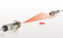 • 長距離検出、透過型20m (円柱型光電センサとして。2010年6月メーカー調べ。)