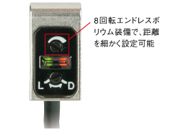 耐油・IP69KのBGSセンサとしては異例となる感度ボリウムを装備。センサの取付位置で距離を調整するのではなくボリウムで設定できるので、時間の短縮になる上、設計の自由度も向上します。